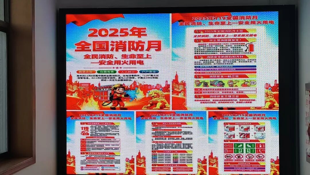 充分利用局机关LED电子显示屏,连续滚动播放消防安全宣传标语和提示信息,积极营造“人人讲安全、个个会应急”的浓厚氛围,提醒干部职工注意用电用火安全。